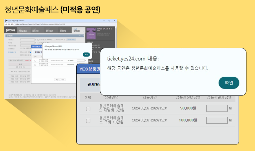❌ 청년문화예술패스 관람 비허용
